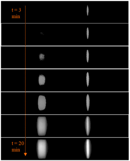 Binary maps obtained with time as the sample flow progresses through the NC membrane.