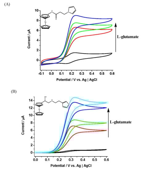 - Mediated detection of l-glutamate using (3-(1H-pyrrol-1-yl)propan amido)ferrocene (2) and 1-hydroxy-2-[2-(thiophen-3-yl)-ethylamino]ethylferrocene (6)