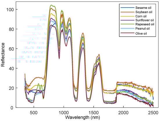 The representative Vis-NIR reflectance spectra of the seven kinds of edible oils.
