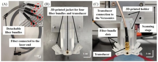 2.2. Design of the AR-PAM Probe—Integration of the Fiber Bundle-Based Illumination System, US Transducer, and 3D-Printed Jacket