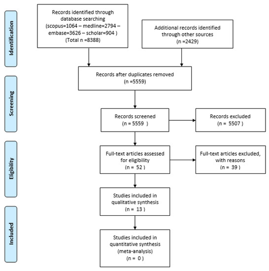 - Moher, D.; Liberati, A.; Tetzlaff, J.; Altman, D.G. Preferred reporting items for systematic reviews and meta-analyses: The PRISMA statement. PLoS Med. 2009, 6, e1000097. [Google Scholar] [CrossRef] [Green Version]
