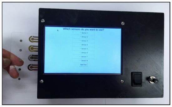 Khetani et al. used differential pulse voltammetry (DPV), a subclass of amperometry, to make the testing of TBI biomarkers portable. DPV involves applying potential pulses with a linear ramp in potential and measuring the corresponding current as a function of potential. The authors developed µDrop, a low-cost potentiostat coupled with functionalized electrodes (immuno-biosensors) for the measurement of cleaved tau (C-tau) and neurofilament light (NF-L) [36]. The µDrop consists of eight DPV modules, allowing the measurement of eight immuno-biosensors in parallel (Figure 1). The immuno-biosensors in the µDrop system were formed by functionalizing the surface of sputtered gold electrodes with antibodies for C-tau and NF-L. The reference electrode was Pt, and the substrate for the electrodes was glass. The µDrop system was used to measure six serum samples from patients with a confirmed TBI and outperformed an ELISA in specificity and sensitivity. Wang et al. also used DPV to quantify GFAP with screen-printed carbon electrodes (SPCEs) coated with a molecularly imprinted polymer that contained multiwalled carbon nanotubes (MWCNTs) [50]. However, this system was not portable and the LLOD of 0.04 µg/mL was not clinically relevant to the diagnosis or monitoring of TBI.