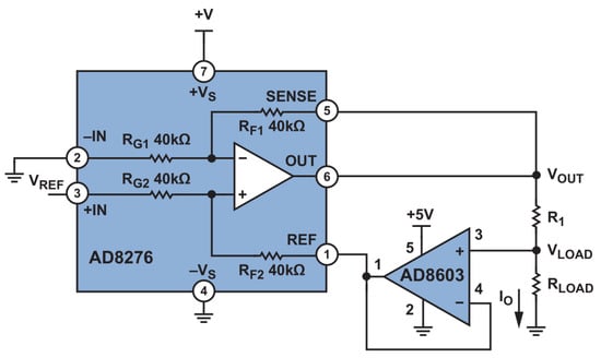 The Howland Pump circuit implemented using an AD8276 and a current buffer (AD8603), Adapted from Ref. [].