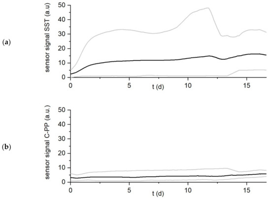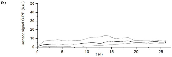 - The reduced sensitivity limits the application of sensor on C-PP to technical systems with accumulating biofilm thicknesses of greater than 50 µm.