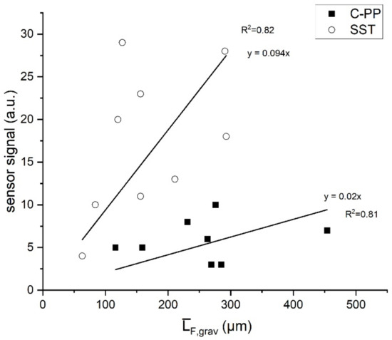 - The application on the C-PP material rather than the standard stainless-steel pipe resulted in a reduction of sensitivity of the sensor, despite fairly similar thermal characteristics of the materials. The sensors on the C-PP material displayed a sensitivity (50 µm/a.u.) approximately 5-fold less than the sensor on stainless-steel (11 µm/a.u.)