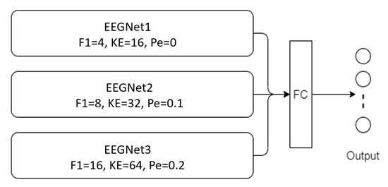 - Fuse parallel models of EEGNet [16] and ShallowConvNet [16] to incorporate the influence of different filter sizes.