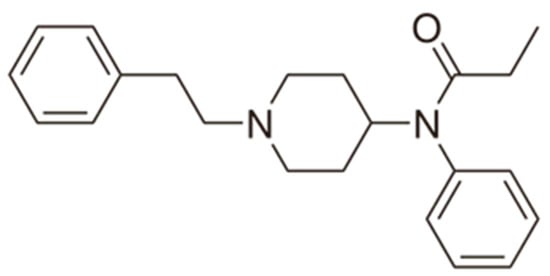 Fentanyl, N-phenyl-N-[1-(2-phenylethyl)piperidin-4-yl]propenamide, CAS No. 437-38-7 (Figure 2), and its derivatives (the most common are listed in Table 1) have been widely used primarily as medications (synthetic opioids).