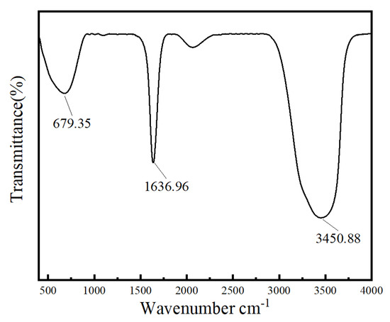 The combination comprising of black phosphorus nanosheets and polylysine was characterized using Fourier transform infrared spectroscopy (FTIR). As shown in Figure 2, there are two prominent peaks at 1636.96 cm−1 and 3450.88 cm−1, which correspond to bending and stretching vibrations of NH, respectively. This is a critical indication of successful polylysine formation, and 679.35 cm−1 was the out-of-plane absorption peak for CH, suggesting that the black phosphorus nanosheets with polylysine were effectively coupled.
