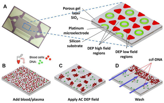 - Sonnenberg, A.; Marciniak, J.Y.; Krishnan, R.; Heller, M.J. Dielectrophoretic isolation of DNA and nanoparticles from blood. Electrophoresis 2012, 33, 2482–2490. [Google Scholar] [CrossRef] [PubMed]
