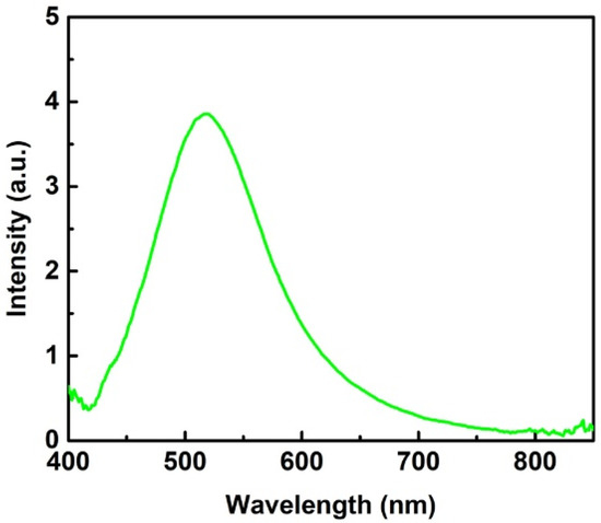 Electromagnetic (EM) enhancement in SERS is contributed by the plasma oscillation of free electrons in metal, which is maximized, while the frequency of the incident matches that of plasma resonance oscillation. The plasmon resonance frequency or the wavelength of the SERS substrate could be measured by capturing the scattering spectrum under white light illumination. Figure 3 displays a scattering spectrum from a typical SERS substrate with 13 deposition cycles. The spectrum shows a peak at 518 nm, which reflects the plasmon resonance wavelength of Ag-nanoparticles embedded in the AAO substrate. Therefore, an excitation light with a wavelength close to the plasmon resonance wavelength should lead to strong SERS signals, which is discussed in detail below.