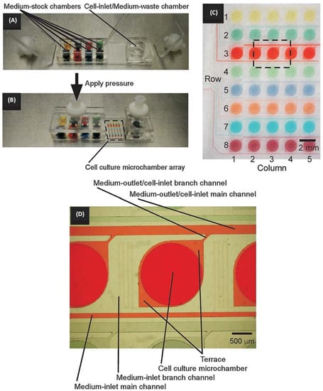 - Sugiura, S.; Edahiro, J.; Kikuchi, K.; Sumaru, K.; Kanamori, T. Pressure-driven perfusion culture microchamber array for a parallel drug cytotoxicity assay. Biotechnol. Bioeng. 2008, 100, 1156–1165. [Google Scholar] [CrossRef] [PubMed]