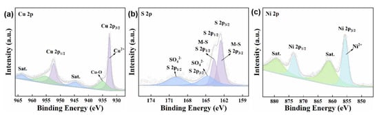 High-resolution XPS spectra of (a) Cu 2p, (b) S 2p, and (c) Ni 2p for Ni0.1Cu0.9S nanoflower.