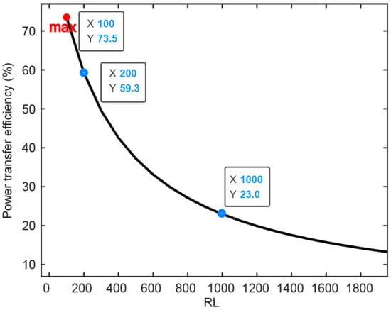Figure 9. COMSOL-based simulation results of the magnetic field coupling link show the power transfer efficiency related to the load resistance.