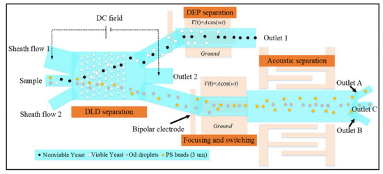 A cascade system to schematize integrated active type particle separation modules [103], Copyright 2021, ACS Publications.