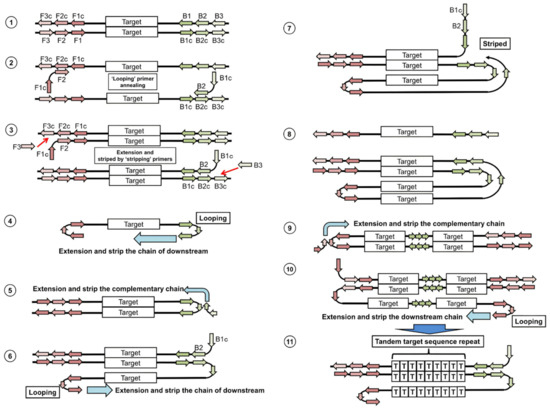 Representation of the LAMP amplification principle in the schematic diagram. Reprinted from Ref. [14].