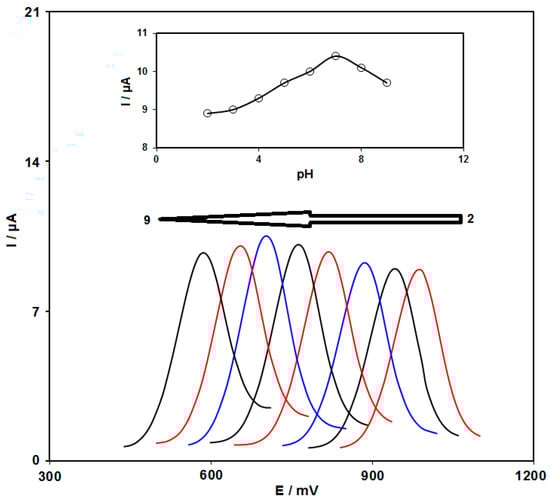 3.3. Influence of pH on Electrochemical Behavior of Sunset Yellow