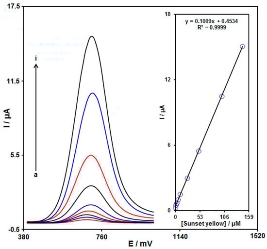 - Wang, J.; Yang, B.; Wang, H.; Yang, P.; Du, Y. Highly sensitive electrochemical determination of Sunset Yellow based on gold nanoparticles/graphene electrode. Anal. Chim. Acta 2015, 893, 41–48. [Google Scholar] [CrossRef] [PubMed]