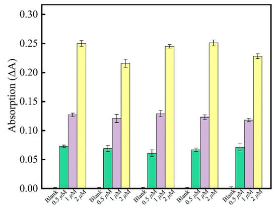 3.2. UV-vis Absorption Linear Range and Detection Limit of RDV