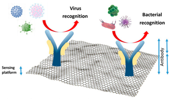 Zhu et al. and Narvaez et al. reported various graphene and reduced graphene-based nanostructures with tuned electrochemical and photochemical properties for the detection of biomolecules. The charge transfer between the target molecule and graphene plays an important role in chemical sensing [72,73]. In addition, these materials can enhance biosensor performance due to their good electrochemical activity, wide potential window, and biocompatibility.