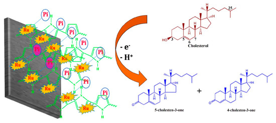 Schematic illustration for the probable redox mechanism of cholesterol on Ru-Pi-PPy/CFP electrode. Reprinted with permission from Ref. [100].