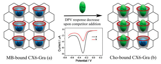 Schematic illustration of host–guest molecular detection of cholesterol (Cho) using CX6–Gra against MB. Reprinted with permission from Ref. [102].