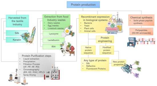 Proteins have multiple levels of organization and the greatest structural diversity of all the macromolecules in nature. Amino acids that form the polypeptide chain lead to tridimensional structures with precise control of nanomorphology [77]. Additionally, the functional groups present in a protein sequence lead to controlled conformational transitions and dynamics as a specific response to external stimuli, making proteins biomolecular elements with potential in the development of metamaterials. A plethora of native proteins with distinguishing mechanical, chemical, electrical, electromagnetic and optical properties has been studied [78]. Elastins, collagens, actines, silks, keratins and reflectins are some of the proteins considered for protein-based biomaterials and soft materials in metamaterials with tuning capability [79].