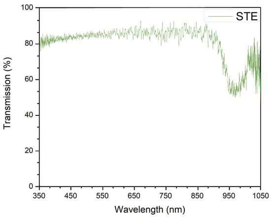 The STE containing NaCl, Tris, and EDTA with pH = 8.0 was used as a buffer medium. The choice of this medium was justified by the absence of a fluorescence signal in the range required. The absorption spectrum of the STE buffer medium (in the visible and IR ranges) is shown in Figure 1. It absorbs, in the IR region, near 980 nm lying far from the SERS signal.