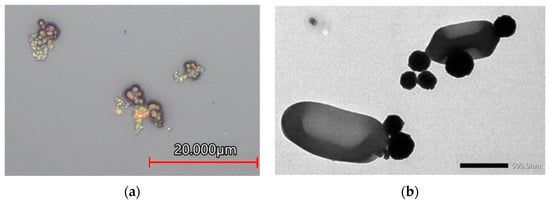 Another attractive aspect of MNPs is their high surface-area-to-volume ratio. The high adsorption capacity of this increased surface area leads to potentially high capture efficiency for the target cells []. In addition, MNPs are typically much smaller than bacterial cells, leading to multiple particles often attaching to a single cell. This behavior has been shown through microscopic imaging in multiple studies [,]. Similar TEM and confocal laser microscope images have been captured in the Nano-Biosensors Laboratory, pictured in Figure 1. This adhesion of multiple MNPs to a single cell may increase the probability of bacterial capture.
