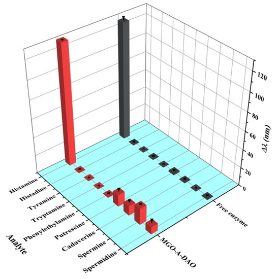 Specificity evaluation of the fabricated biosensor: Δλ of AuNRs responding to histamine and other common analytes at a concentration of 160 μM.