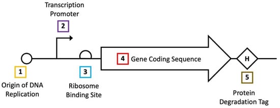 - Davis, J.; Rubin, A.J.; Sauer, R.T. Design, construction and characterization of a set of insulated bacterial promoters. Nucleic Acids Res. 2010, 39, 1131–1141. [Google Scholar] [CrossRef] [Green Version]