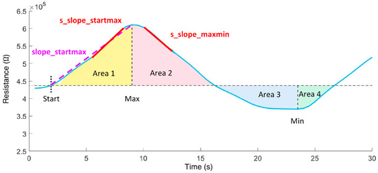 Time domain features extracted from the resistance curve of an exhalation cycle.