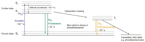 Jablonski diagram of the electron energy levels and transitions of fluorophores [29].