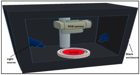 Diagram of the RGB vision system used to obtain color images of pure and contaminated meat samples [33].