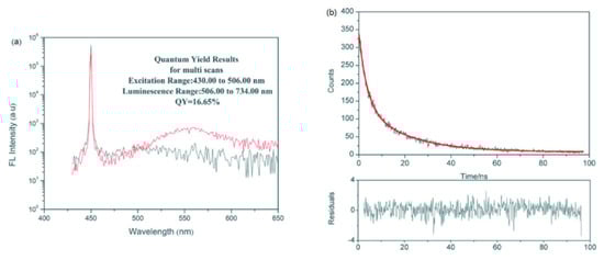 Fluorescence properties of CdSe quantum dots: (a) Fluorescence quantum yields of CdSe quantum dots. (b) Fluorescence lifetime of CdSe quantum dots [99].