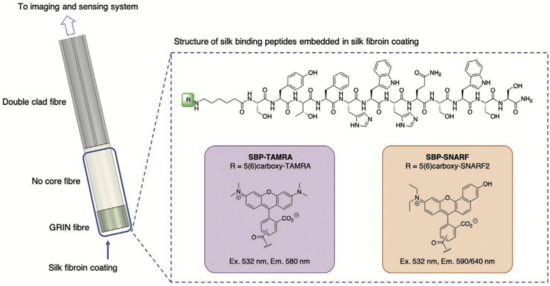 Silk-based functionalization of a DCF fiber probes for pH sensing. Image reprinted with permission from ref. [47]. Copyright 2021 Wiley-VCH GmbH.