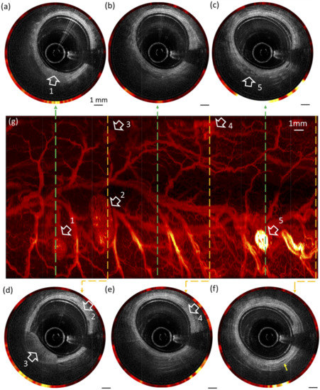 - Wang, H.; Gardecki, J.A.; Ughi, G.J.; Jacques, P.V.; Hamidi, E.; Tearney, G.J. Ex vivo catheter-based imaging of coronary atherosclerosis using multimodality OCT and NIRAF excited at 633 nm. Biomed. Opt. Express 2015, 6, 1363. [Google Scholar] [CrossRef]