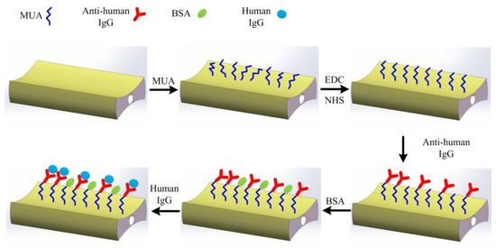 As shown in Figure 7, the surface modification of the H-shaped optical fiber and the human-IgG detection process is as follows: