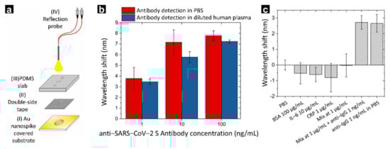 - Funari, R.; Chu, K.Y.; Shen, A.Q. Detection of antibodies against SARS-CoV-2 spike protein by gold nanospikes in an opto-microfluidic chip. Biosens. Bioelectron 2020, 169, 112578. [Google Scholar] [CrossRef]