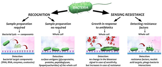 - Ahmed, A.; Rushworth, J.V.; Hirst, N.A.; Millner, P.A. Biosensors for whole-cell bacterial detection. Clin. Microbiol. Rev. 2014, 27, 631–646. [Google Scholar] [CrossRef] [PubMed] [Green Version]
