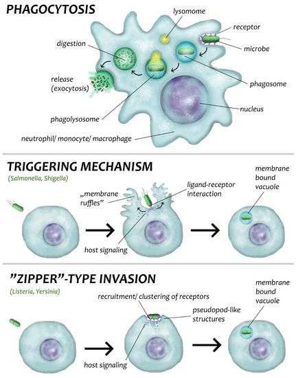 - Dersch, P. Molecular and cellular mechanisms of bacterial entry into host cells. Contrib. Microbiol. 2003, 10, 183–209. [Google Scholar]