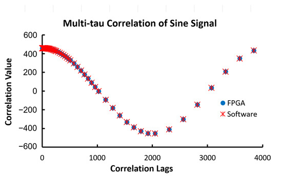 Correlation is often computationally intensive, especially when data size is large. Thus, it is a challenge to use software approaches for the computation of the correlation in real-time data analysis when computing resources are limited. Hardware correlators have been developed using field-programmable gate array technology to address the need. For example, multi-channel FPGA cross-correlators were used in aperture synthesis imaging systems [15,16,17]. The FPGA correlator alleviated the computational load in real-time ultrasound sensor systems using the complementary ultrasound pulse sequences for the enhancement of the signal-to-noise ratio [18].