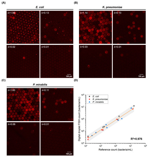 - Scheler, O.; Pacocha, N.; Debski, P.R.; Ruszczak, A.; Kaminski, T.S.; Garstecki, P. Optimized droplet digital CFU assay (ddCFU) provides precise quantification of bacteria over a dynamic range of 6 logs and beyond. Lab Chip 2017, 17, 1980–1987. [Google Scholar] [CrossRef] [Green Version]