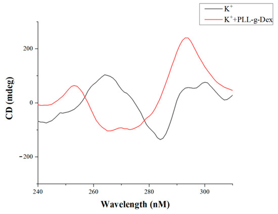 Experimental results of CD ([K+] = 50 mM, [PLL-g-Dex] = 0.1 μM, [c-myc] = 2.0 μM).