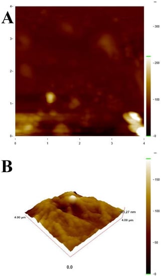 AFM images were used to analyze the structural properties of the multilayer film ct-dsDNA modified to the glass surface. To assess the thickness of the biofilm, the clean glass surface was coated with 5 µL of 5 drops each containing 50 ppm of ct-dsDNA and investigated by AFM. The thickness of the biofilm covering with ct-dsDNA was then measured.