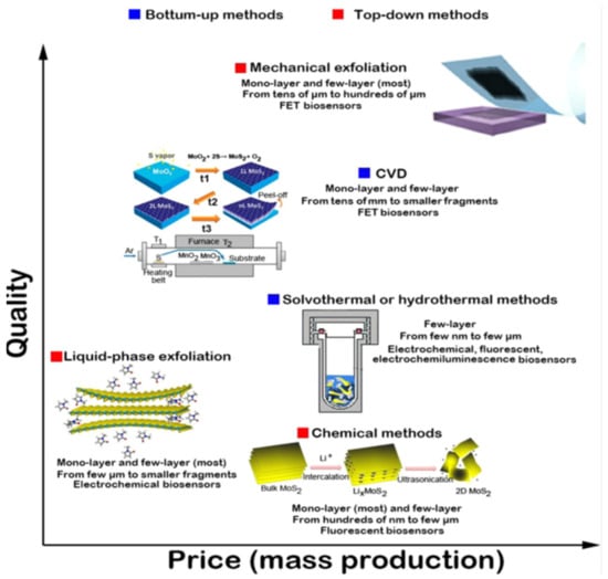 - Gan, X.R.; Zhao, H.M.; Quan, X. Two-dimensional MoS2: A promising building block for biosensors. Biosens. Bioelectron. 2017, 89, 56–71. [Google Scholar] [CrossRef]