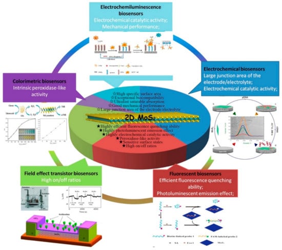 - Lee, J.; Dak, P.; Lee, Y.; Park, H.; Choi, W.; Alam, M.A.; Kim, S. Two-dimensional Layered MoS2 Biosensors Enable Highly Sensitive Detection of Biomolecules. Sci. Rep. 2014, 4, 7352. [Google Scholar] [CrossRef] [Green Version]