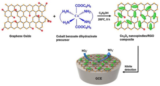 - Haldorai, Y.; Kim, J.Y.; Vilian, A.T.E.; Heo, N.S.; Huh, Y.S.; Han, Y.K. An enzyme-free electrochemical sensor based on reduced graphene oxide/Co3O4 nanospindle composite for sensitive detection of nitrite. Sens. Actuators B Chem. 2016, 227, 92–99. [Google Scholar] [CrossRef]
