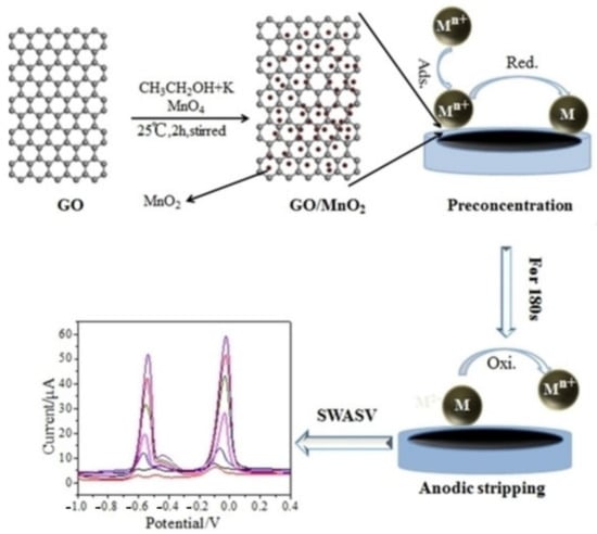 - Sun, H.Y.; Wang, C.X.; Xu, Y.J.; Dai, D.M.; Deng, X.Y.; Gao, H.T. A Novel Electrochemical Sensor Based on A Glassy Carbon Electrode Modified with GO/MnO2 for Simultaneous Determination of Trace Cu(II) and Pb(II) in Environmental Water. Chemistryselect 2019, 4, 11862–11871. [Google Scholar] [CrossRef]