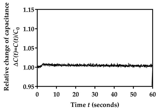 Capacitance values over time, C(t), were stored, and finally, the relative change in capacitance over time compared to the initial value C0 was calculated: