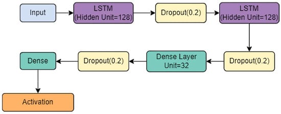 - Each LSTM layer consisted of 128 hidden units and a dropout layer added to reduce overfitting.